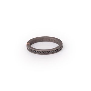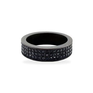 Anello uomo in titanio a fascia piatta incassato con tre file di diamanti black