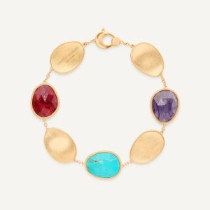 Bracciale in oro giallo 18 carati con tulite, turchese e charoite