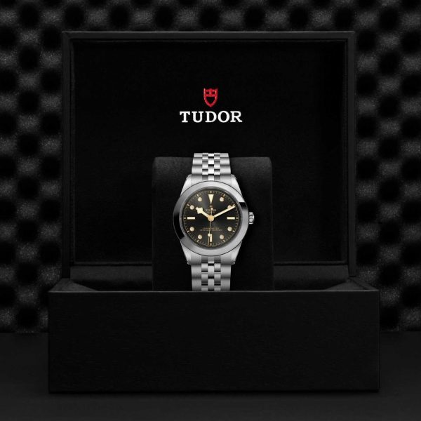 Il Black Bay rende omaggio a 60 anni di tradizione nella produzione di orologi subacquei. Le linee d’insieme e il quadrante e il vetro bombati di questo modello iconico sono un riferimento ai primissimi orologi subacquei TUDOR. Le lancette dalla caratteristica forma spigolosa, note come “Snowflake”, si ispirano agli orologi consegnati in grandi quantità alla Marina francese negli anni ’70.