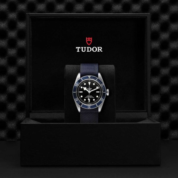 Il Black Bay rende omaggio a 60 anni di tradizione nella produzione di orologi subacquei. Le linee d’insieme e il quadrante e il vetro bombati di questo modello iconico sono un riferimento ai primissimi orologi subacquei TUDOR. Le lancette dalla caratteristica forma spigolosa, note come “Snowflake”, si ispirano agli orologi consegnati in grandi quantità alla Marina francese negli anni ’70.