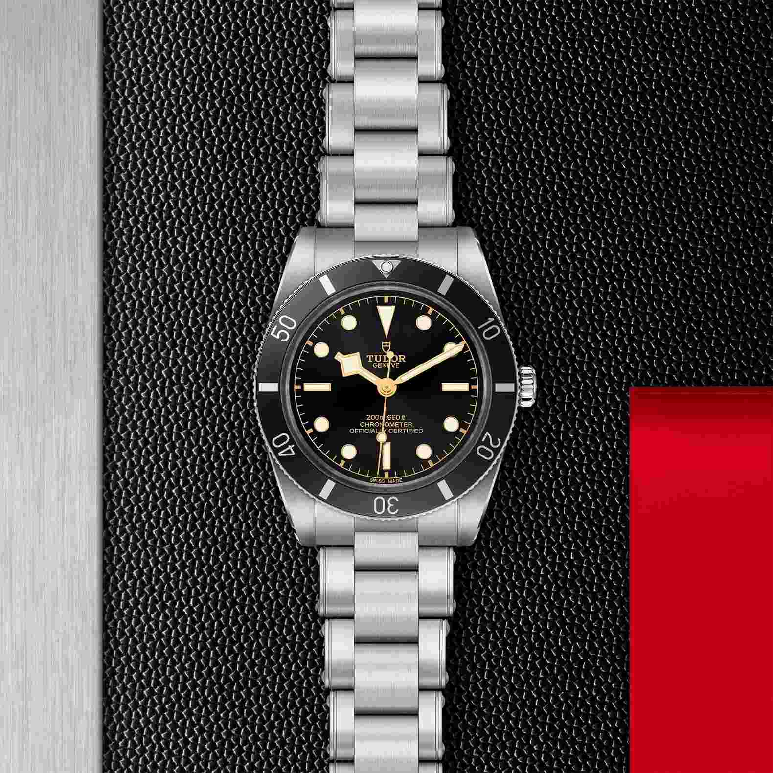 Il Black Bay 54 è il modello più fedele al primissimo orologio subacqueo di TUDOR, la referenza 7922, che sia mai stato creato finora. La cassa di 37 mm riprende le proporzioni classiche di un tempo, ma racchiude nel Calibro di Manifattura MT5400 tutto il know‑how moderno di TUDOR e vanta un’impermeabilità fino a 200 m.