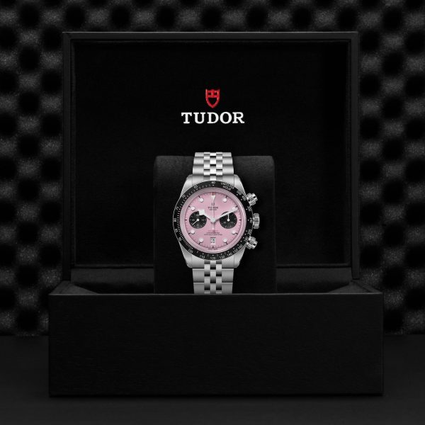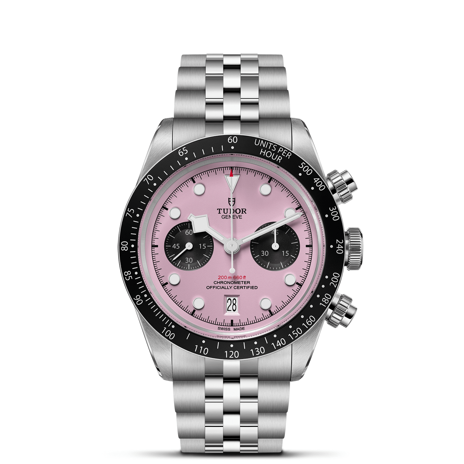 L’orologio ibrido Black Bay Chrono unisce alla tradizione dei modelli subacquei Black Bay la funzione cronografo tipica del mondo delle corse. Le caratteristiche della collezione Black Bay sono preservate nella cassa in acciaio dotata di pulsanti ispirati alla prima generazione di cronografi TUDOR. Una lunetta fissa con scala tachimetrica incisa completa il quadrante di questo cronografo dallo stile sportivo.