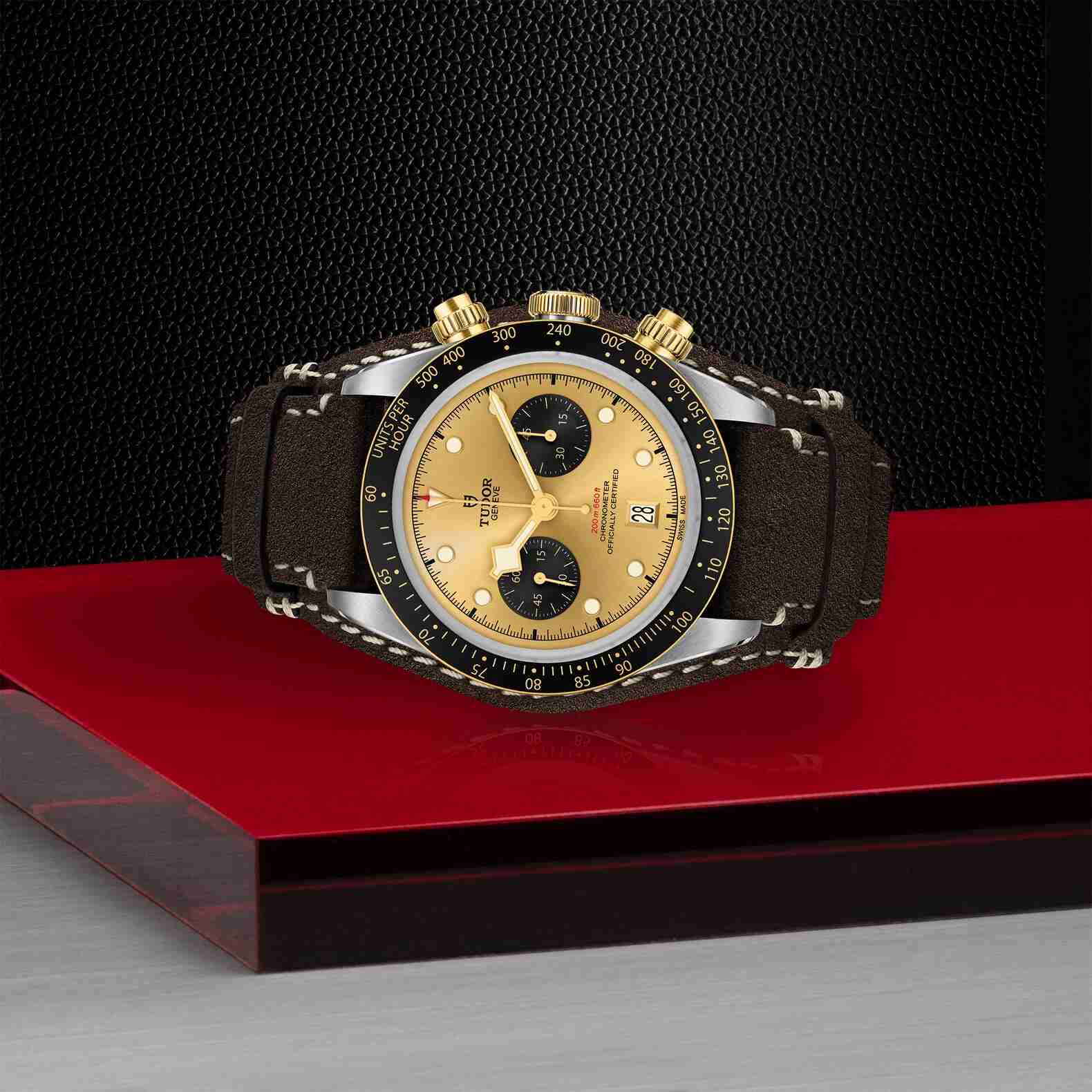 L’orologio ibrido Black Bay Chrono unisce alla tradizione dei modelli subacquei Black Bay la funzione cronografo tipica del mondo delle corse. Le caratteristiche della collezione Black Bay sono preservate nella cassa in acciaio dotata di pulsanti ispirati alla prima generazione di cronografi TUDOR. Una lunetta fissa con scala tachimetrica incisa completa il quadrante di questo cronografo dallo stile sportivo.