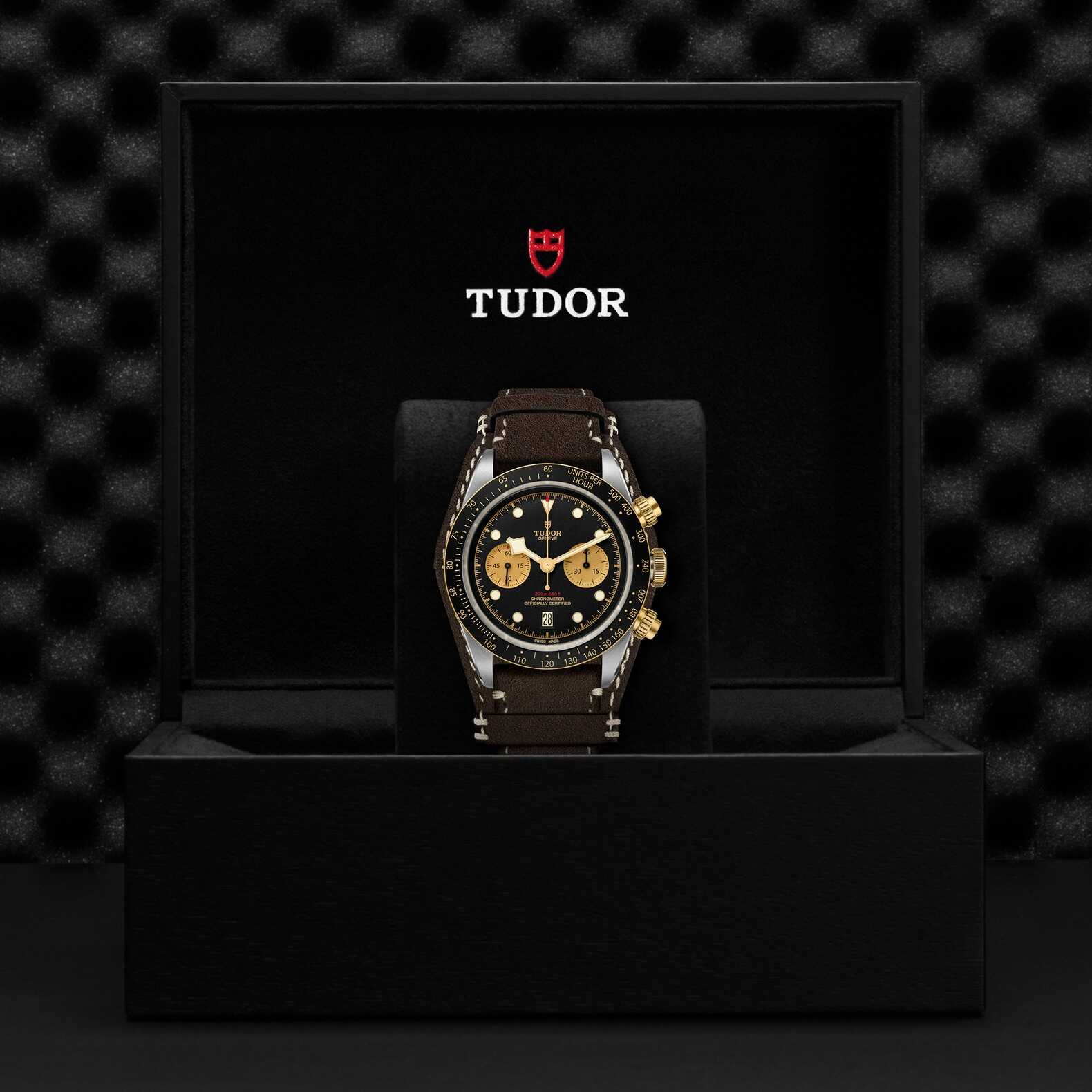 L’orologio ibrido Black Bay Chrono unisce alla tradizione dei modelli subacquei Black Bay la funzione cronografo tipica del mondo delle corse. Le caratteristiche della collezione Black Bay sono preservate nella cassa in acciaio dotata di pulsanti ispirati alla prima generazione di cronografi TUDOR. Una lunetta fissa con scala tachimetrica incisa completa il quadrante di questo cronografo dallo stile sportivo.