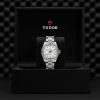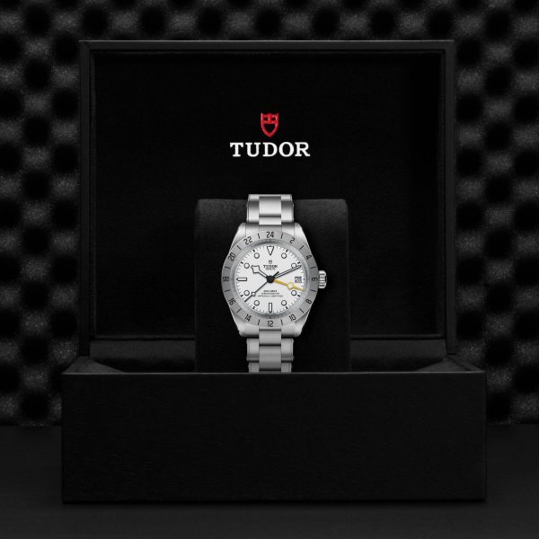 Il Black Bay Pro è un modello interamente nuovo dotato di doppio fuso orario, una complicazione tecnica che permette di visualizzare l’ora locale senza perdere di vista l’ora di un altro fuso orario. Compatto, robusto e sportivo, questo modello presenta numerosi dettagli estetici unici e celebra lo spirito degli orologi tecnici che TUDOR ha prodotto per i professionisti nel corso della sua storia. Riconoscibile grazie alla lunetta fissa satinata graduata 24 ore e alla lancetta “Snowflake” 24 ore di colore giallo, il Black Bay Pro è animato dal Calibro di Manifattura TUDOR MT5652 con funzione GMT integrata.