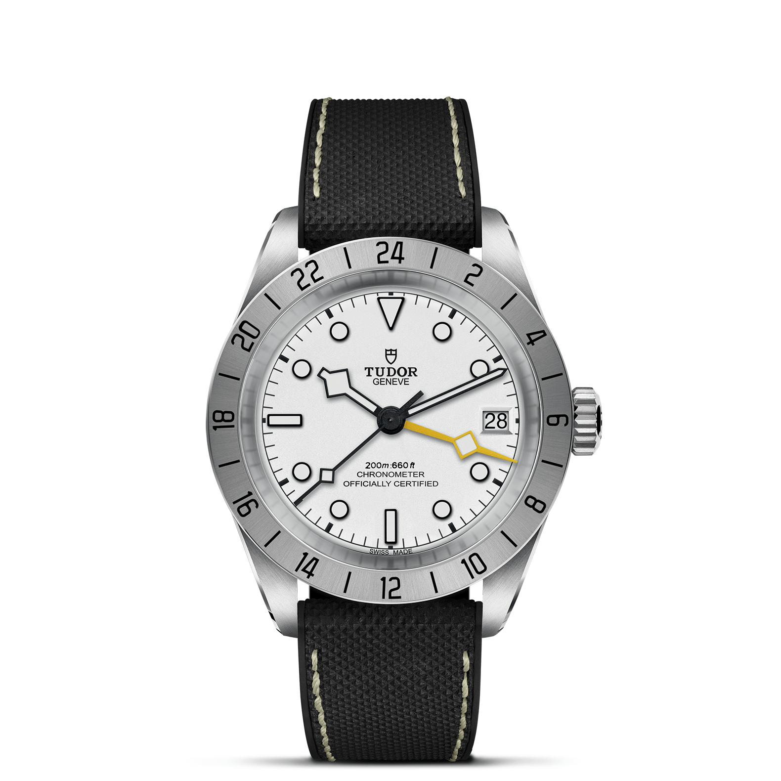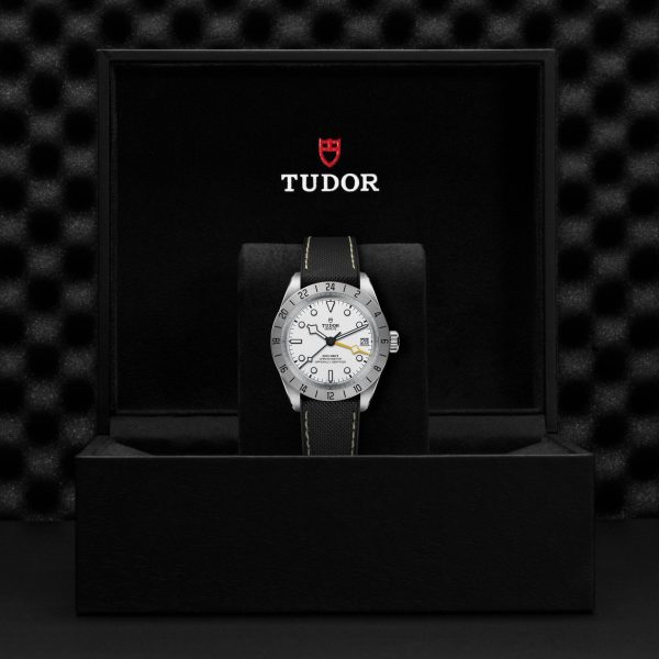 Il Black Bay Pro è un modello interamente nuovo dotato di doppio fuso orario, una complicazione tecnica che permette di visualizzare l’ora locale senza perdere di vista l’ora di un altro fuso orario. Compatto, robusto e sportivo, questo modello presenta numerosi dettagli estetici unici e celebra lo spirito degli orologi tecnici che TUDOR ha prodotto per i professionisti nel corso della sua storia. Riconoscibile grazie alla lunetta fissa satinata graduata 24 ore e alla lancetta “Snowflake” 24 ore di colore giallo, il Black Bay Pro è animato dal Calibro di Manifattura TUDOR MT5652 con funzione GMT integrata.