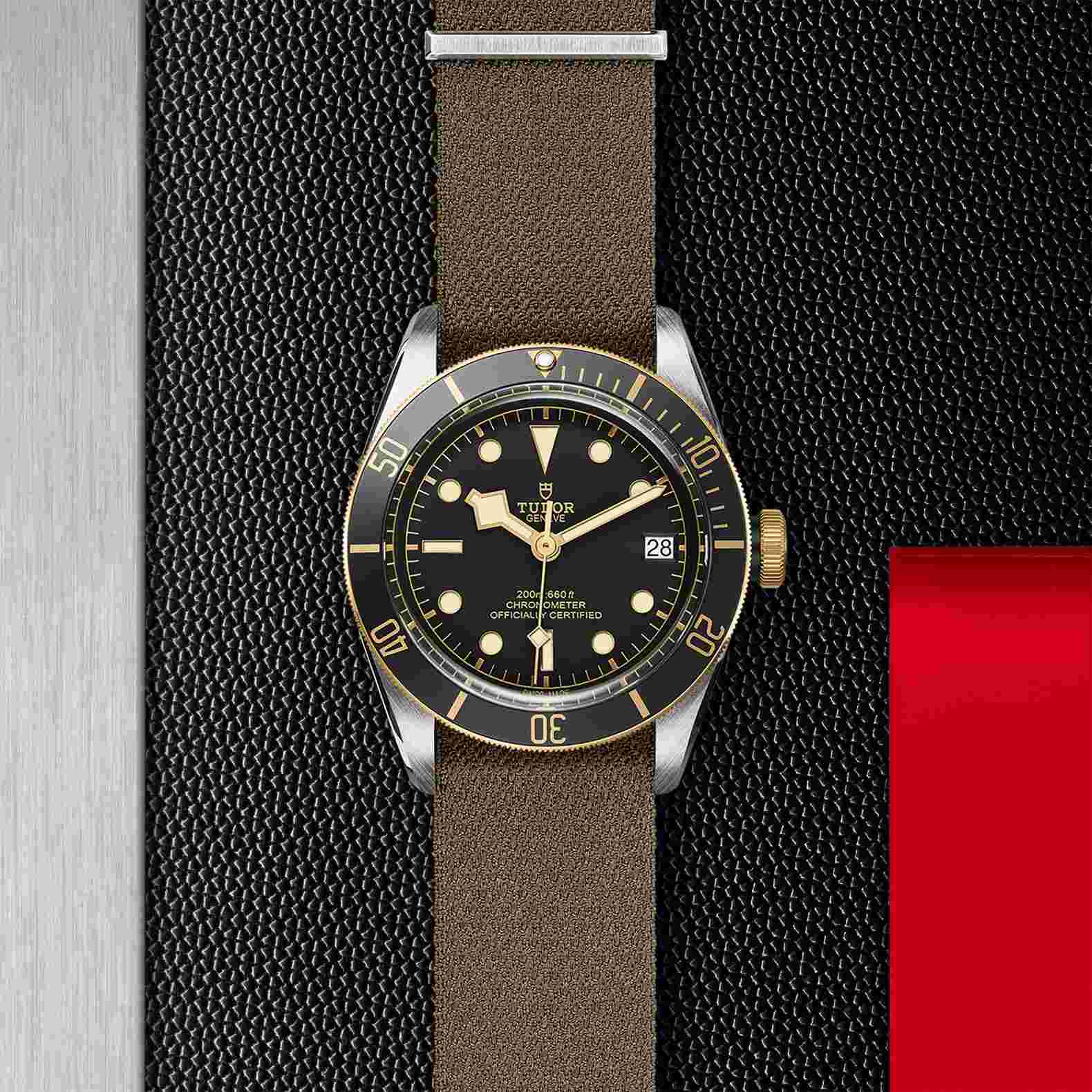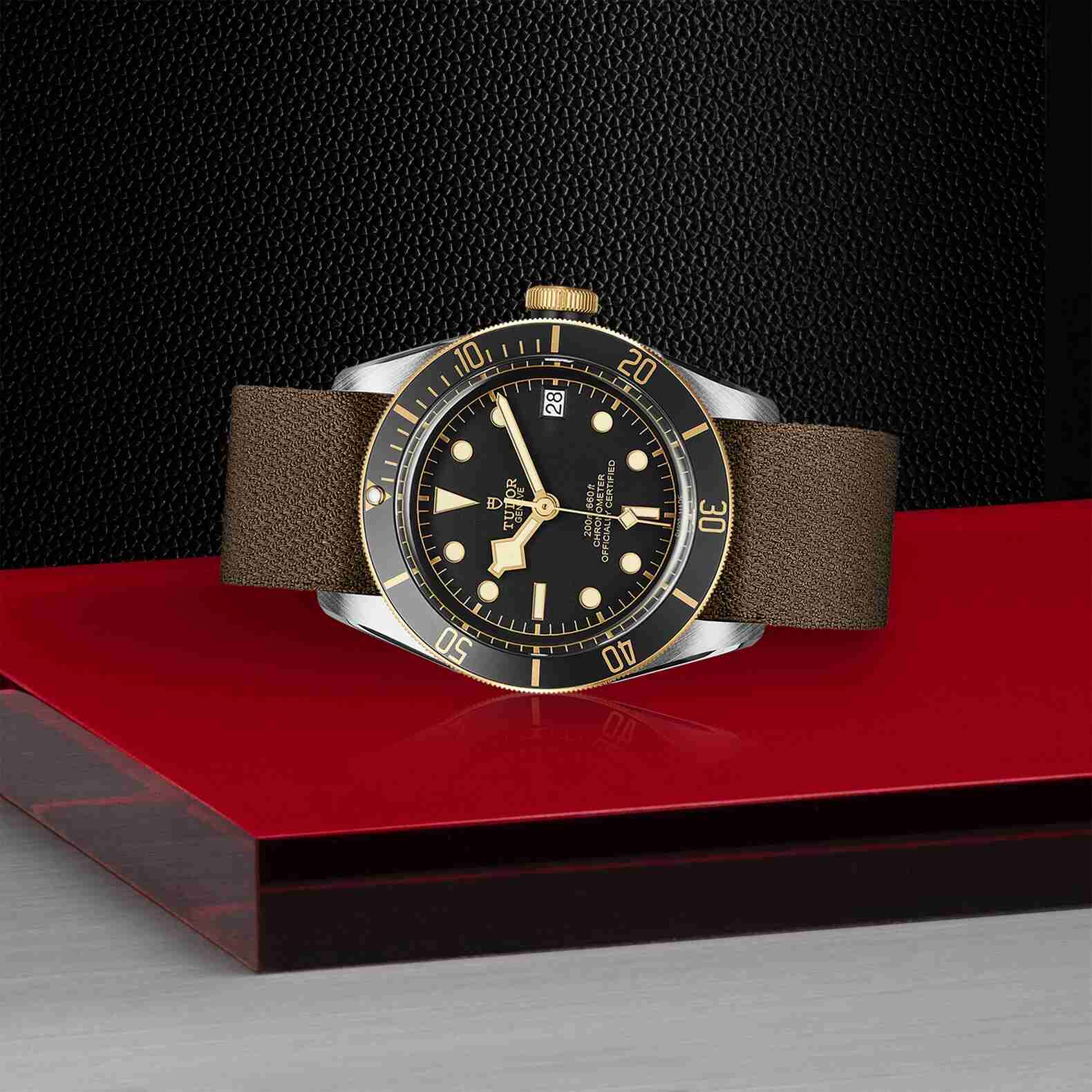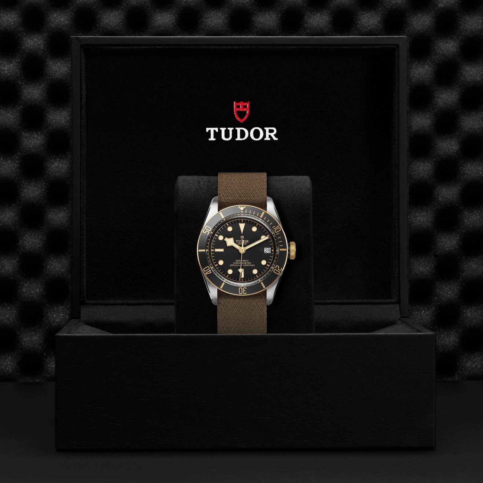 Il Black Bay è proposto anche in versione S&G, Steel & Gold (acciaio e oro), impreziosita da un rivestimento in oro giallo. Per i caratteristici codici estetici del Black Bay S&G, TUDOR si è ispirata alla propria storia. La forma e il quadrante e il vetro bombati sono un riferimento ai primissimi modelli subacquei TUDOR. Questa versione conserva le linee e le proporzioni del Black Bay, ma con la lunetta girevole e la corona di carica rivestite di oro giallo.
