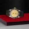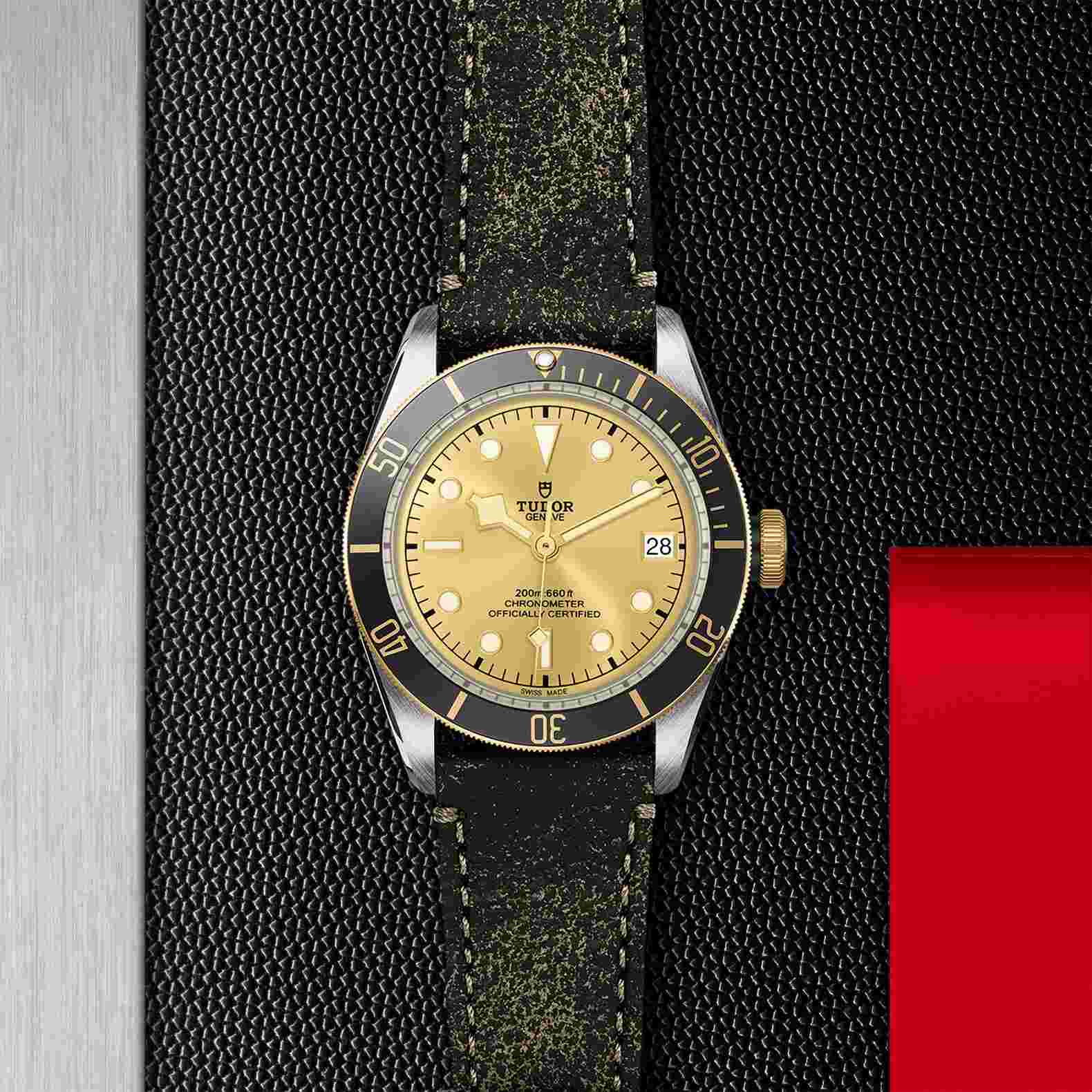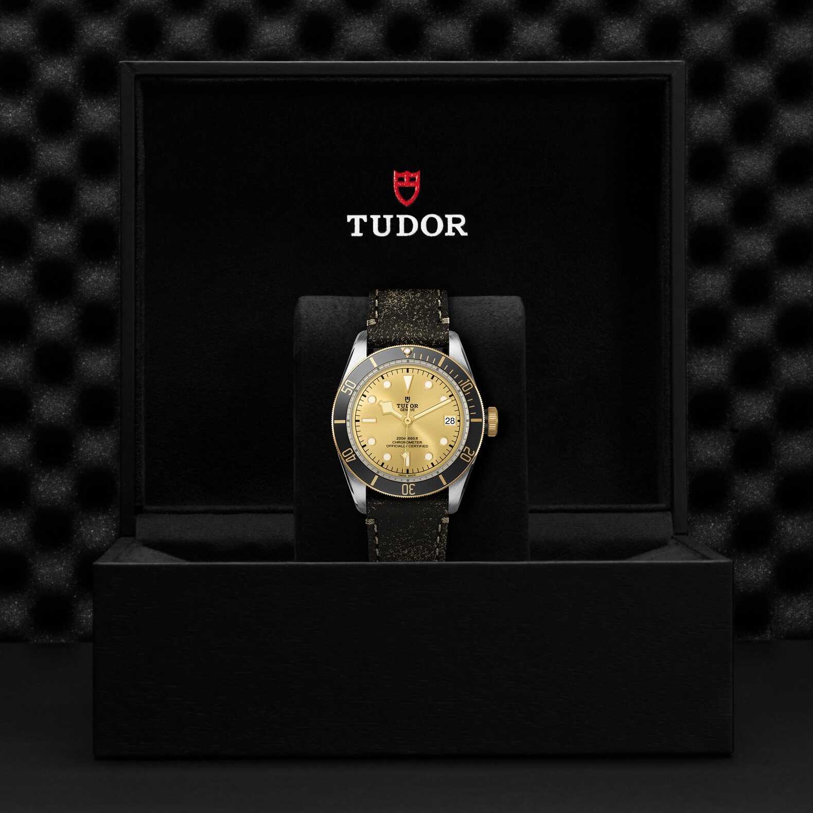 Il Black Bay è proposto anche in versione S&G, Steel & Gold (acciaio e oro), impreziosita da un rivestimento in oro giallo. Per i caratteristici codici estetici del Black Bay S&G, TUDOR si è ispirata alla propria storia. La forma e il quadrante e il vetro bombati sono un riferimento ai primissimi modelli subacquei TUDOR. Questa versione conserva le linee e le proporzioni del Black Bay, ma con la lunetta girevole e la corona di carica rivestite di oro giallo.
