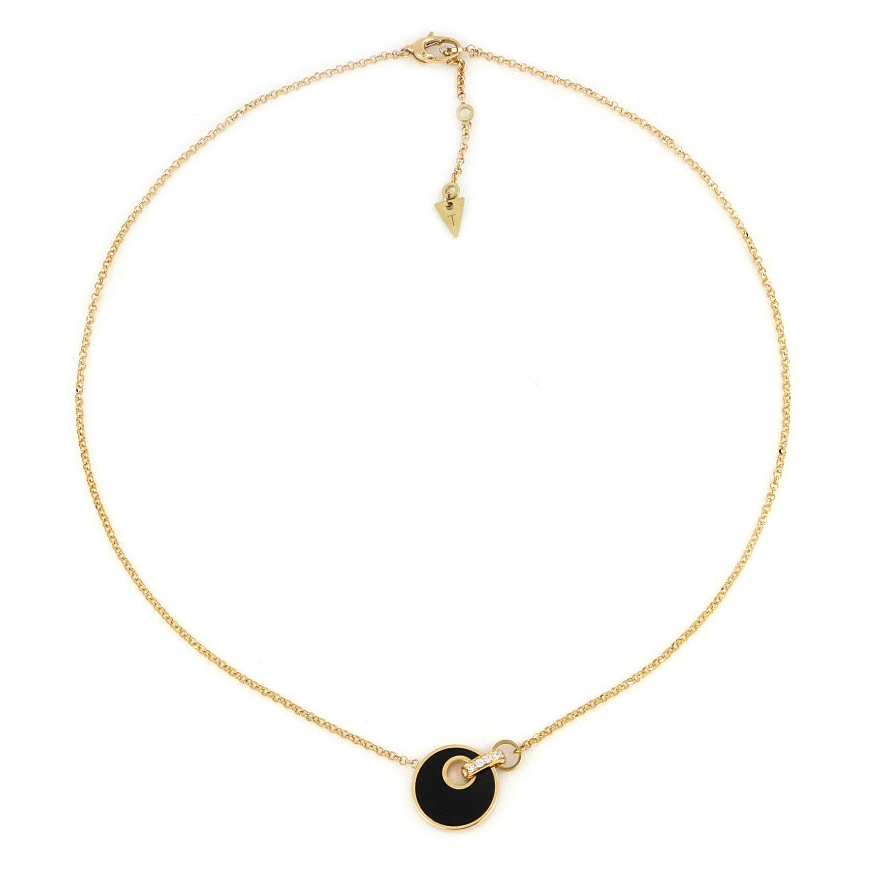 Questa collana in oro giallo è un gioiello dal design innovativo e divertente. Un tocco di irriverente creatività unisce l’oro 18 kt con un pendente in onice, impreziosito da un pavè di diamanti.