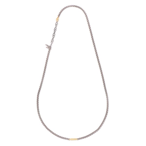 La catena scooby doo è l’elemento principale del bracciale che termina con una preziosa chiusura a gancio in oro 9 kt e con un cornetto pendente. La piccola barretta in oro aggiunge un tocco di originalità alla collana. Un comodo e prezioso gioiello che per leggerezza e manifattura, permette massimo comfort e adattabilità.