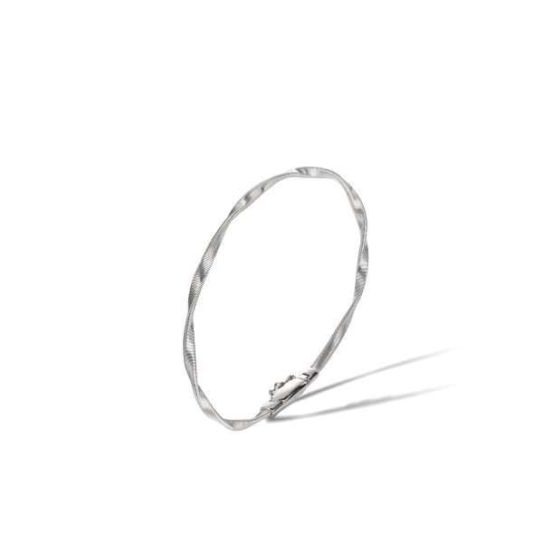 Un filo d’oro bianco 18kt, nella versione bold della spirale ritorta, realizzata grazie all’esclusiva lavorazione artigianale del coil. Un bracciale dal design sofisticato, perfetto se indossato da solo, superbo se abbinato agli altri gioielli Marco Bicego.