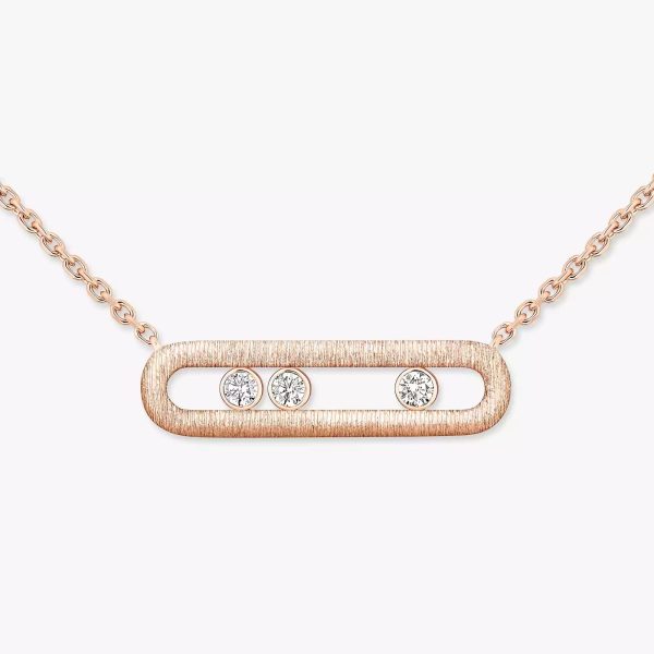 La sofisticatezza dell’oro rosa cesellato sublima il design iconico della collana con diamanti da donna Move Messika. Questa finitura singolare rivela il savoir-faire della Maison: incisa a mano, ogni cesellatura cattura e riflette la luce all’infinito grazie alla precisione del gesto gioielliero. Una lavorazione del materiale con giochi di rilievo a contrasto che dona un’aura raffinatamente vintage ai gioielli di lusso. Una collana in oro e diamanti per affermare ogni singola sfumatura della tua unicità.