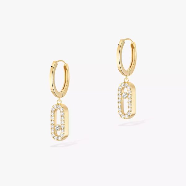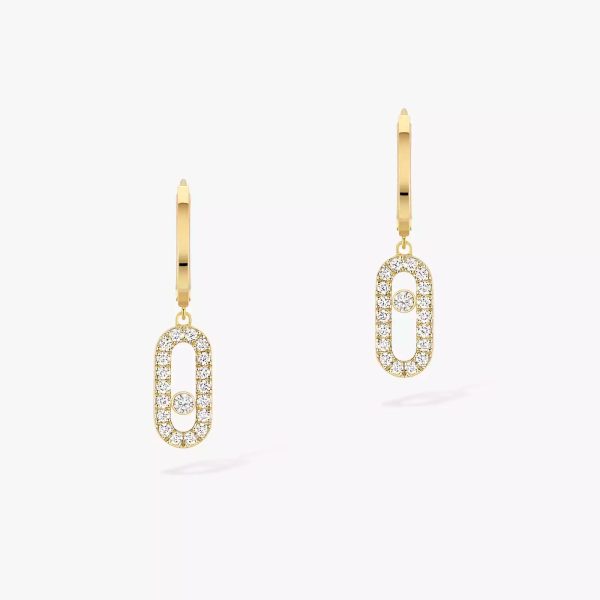 Cerchi un paio di orecchini lussuosi e femminili da indossare tutti i giorni? Scopri i nuovi orecchini a cerchio con diamanti Move Uno. Questi orecchini pendenti realizzati a mano in oro giallo 18 carati sono tempestati di diamanti e presentano il motivo iconico di Messika: un diamante intrappolato tra due binari, che si muove mentre ti muovi. Risultato: orecchini a cerchio dal design delicato, estremamente confortevoli. Da indossare in coppia, da accumulare sullo stesso lobo o anche da soli in mono. Tante possibilità per variare gli stili.