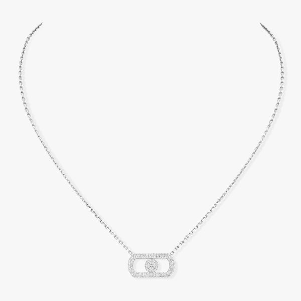 Se stai cercando la collana con ciondolo di status definitivo, non cercare oltre! La collana di diamanti in oro bianco So Move è la creazione Messika di cui hai bisogno! Il motivo iconico della Maison viene reinventato in una versione ancora più audace e decisa. Valérie Messika conferisce al diamante mobile una dimensione completamente nuova con contorni più scultorei e un diamante mobile ancora più imponente grazie alla sua cornice incastonata. Questo nuovo portagioie essenziale è disponibile anche in oro giallo e oro rosa.
