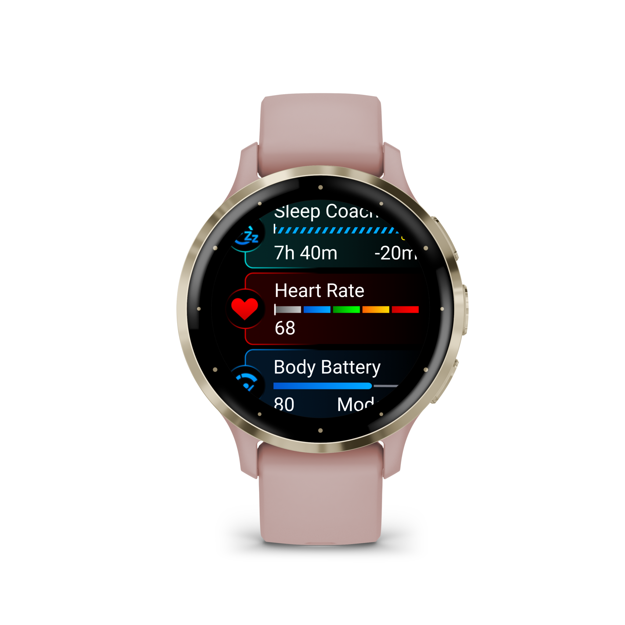 Concepito per offrire funzioni avanzate durante i tuoi allenamenti, effettuare chiamate e inviare messaggi1, Venu 3S non è solo uno smartwatch, ma un allenatore personale che può aiutarti a raggiungere qualunque obiettivo.