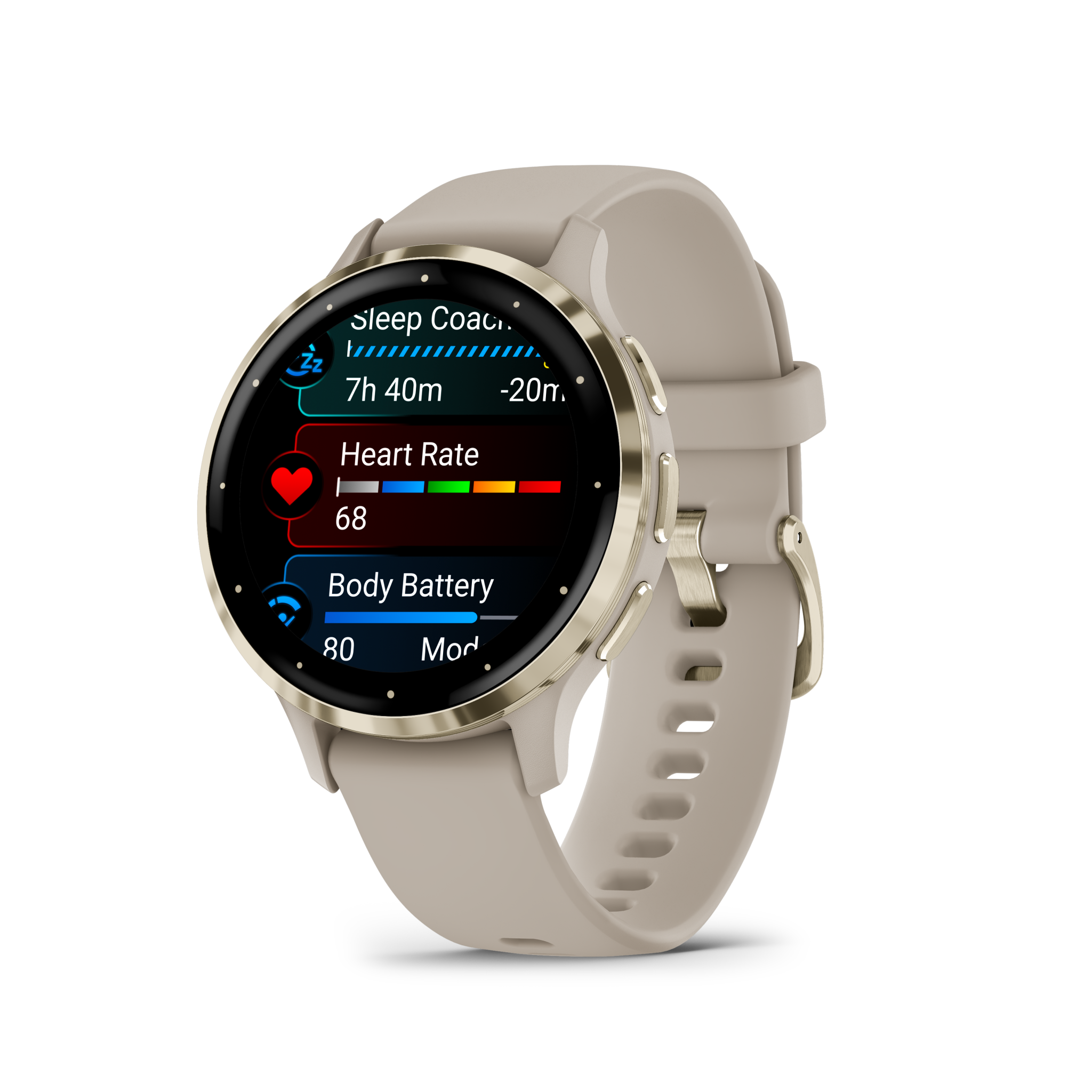 Concepito per offrire funzioni avanzate durante i tuoi allenamenti, effettuare chiamate e inviare messaggi1, Venu 3S non è solo uno smartwatch, ma un allenatore personale che può aiutarti a raggiungere qualunque obiettivo.