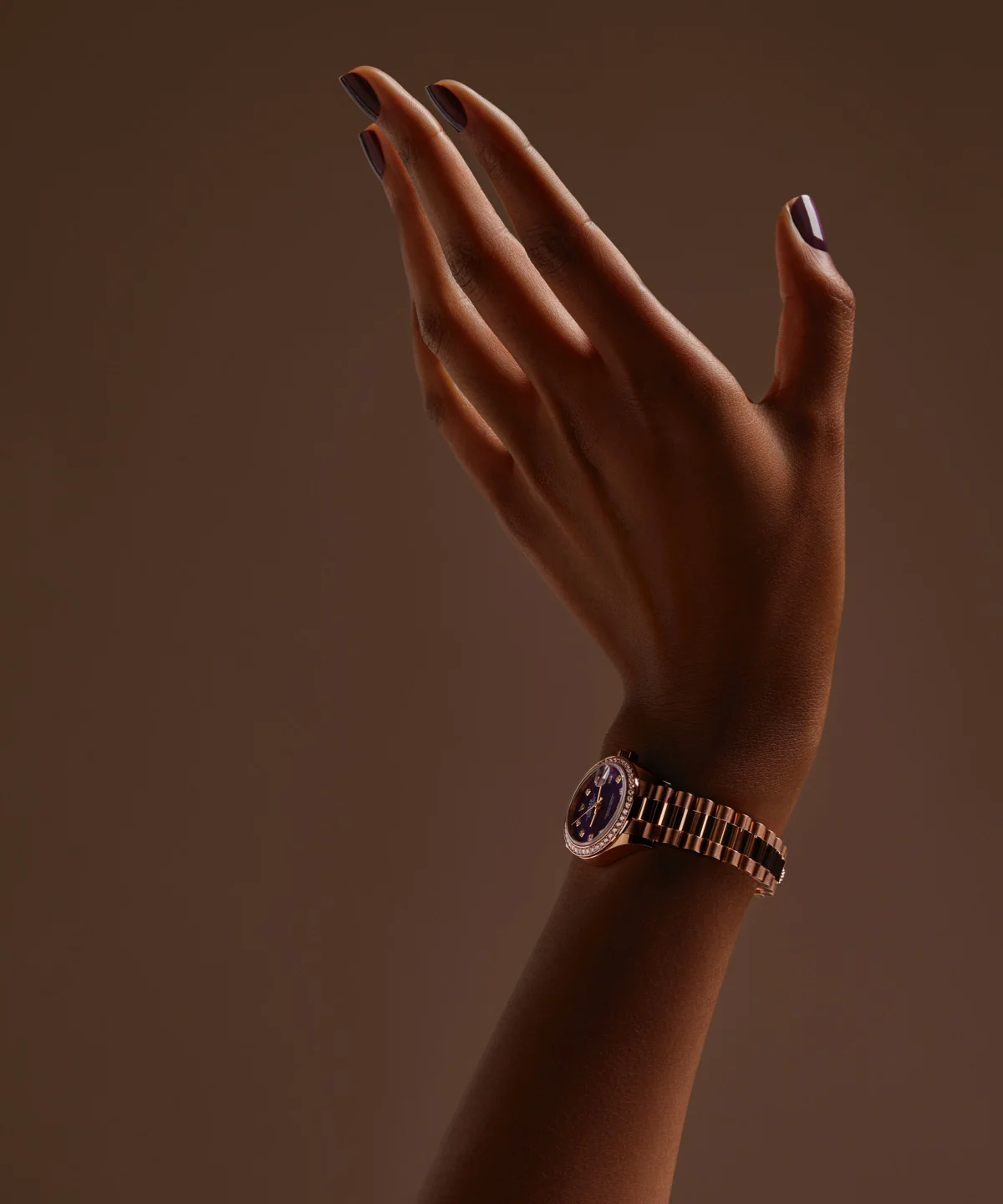 Quadranti con finiture soleil, con pavé di diamanti o in madreperla: il Lady Datejust offre un’ampia varietà di scelta per permettere di esprimere al meglio la personalità di chi lo indossa. In base alla declinazione, il Lady Datejust è proposto con lunetta bombata, zigrinata o impreziosita da diamanti.