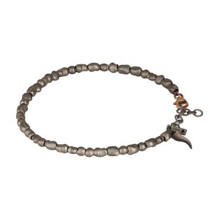 Bracciale uomo con sassi piccoli in titanio e oro rosso 9 kt, cornetto in titanio